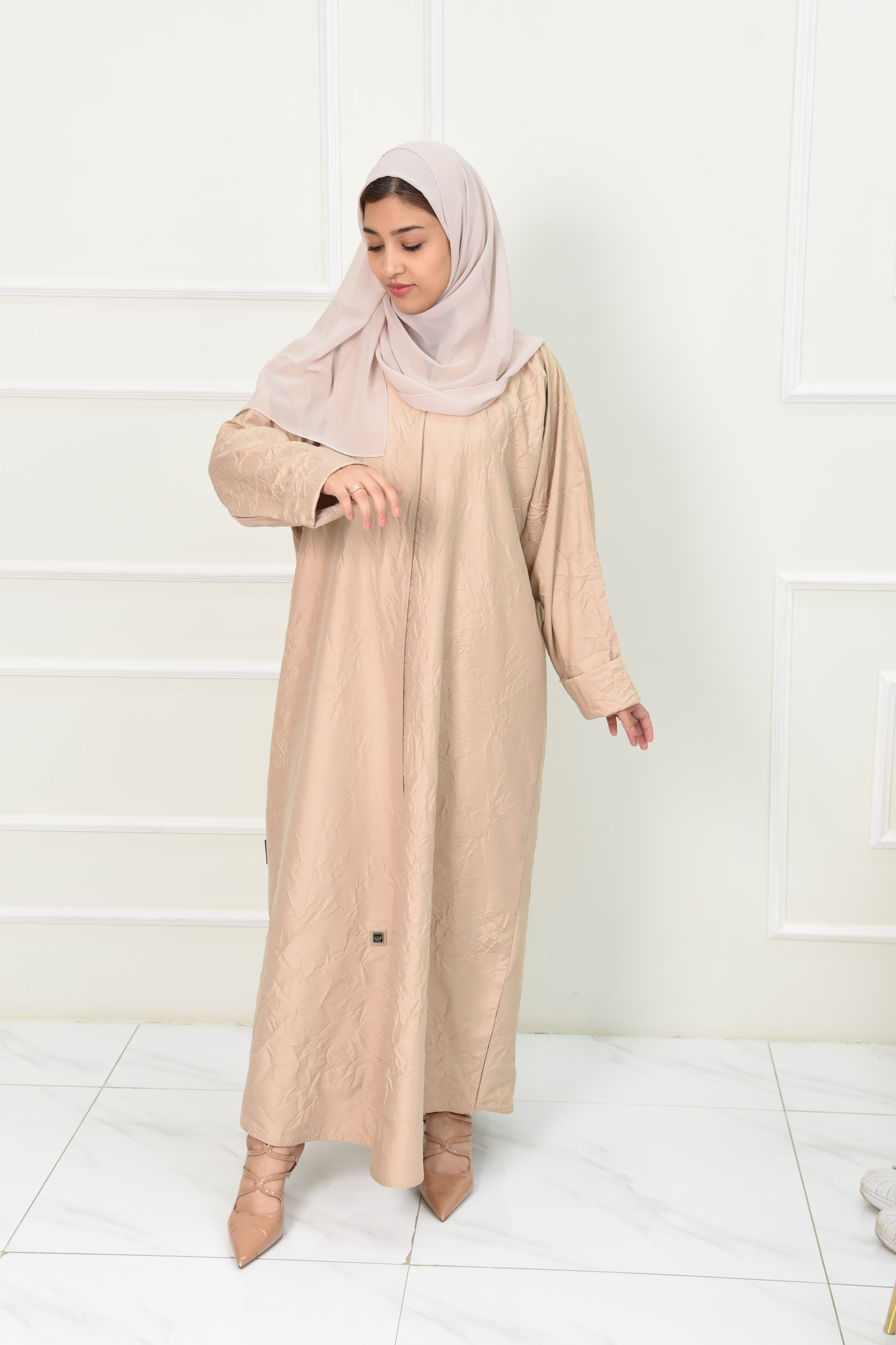 عباية تفتة بلون بيج وأكمام مقلوبة